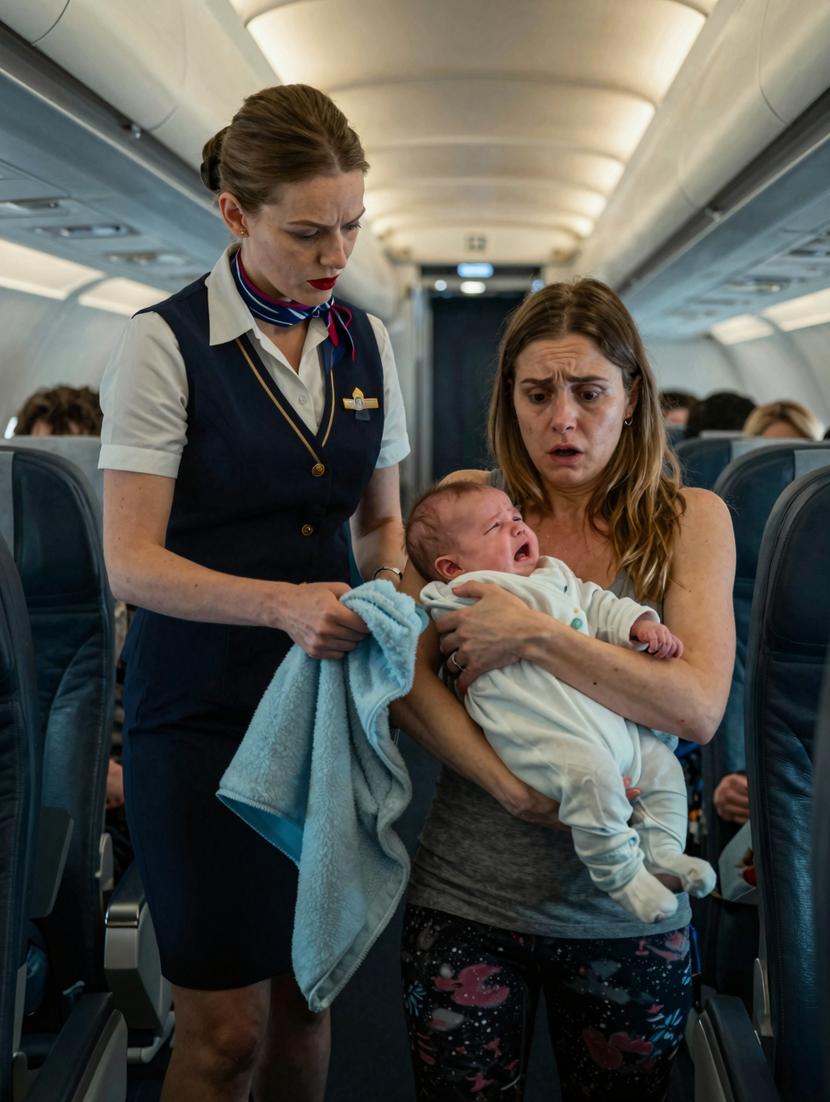 I didn’t wait. Holding Noah, still damp with spit-up and tears, I strode onto the plane—bearing the same worn clothes but wielding a steely gaze that could cut glass.
