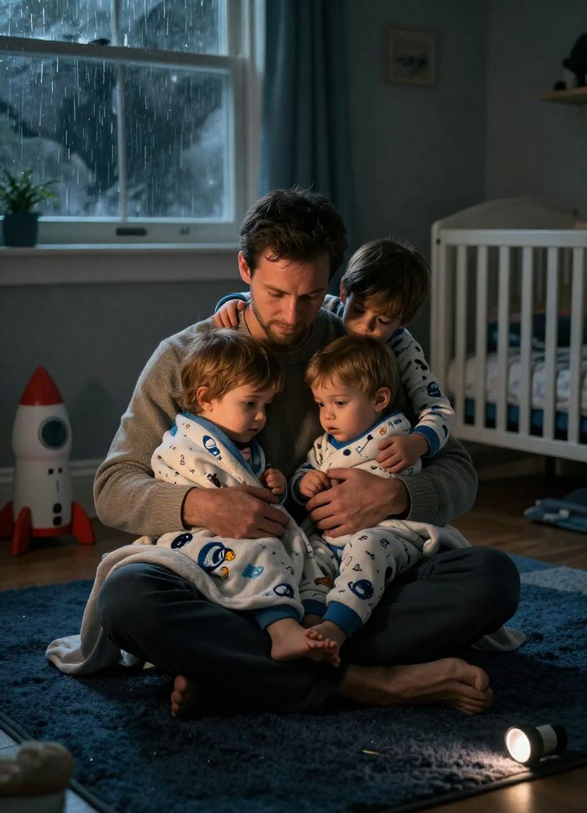 Logan remained on the floor for an hour, until the storm subsided and the triplets slipped into sleep, tangled around him like warm, breathing blankets.