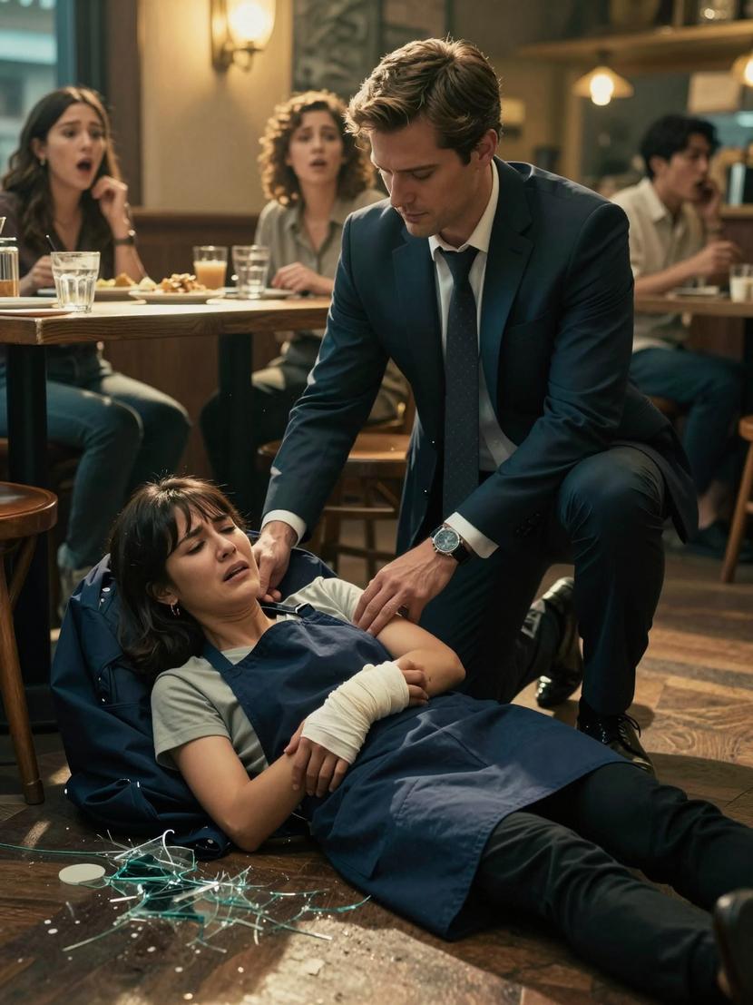The newcomer’s eyes swept slowly over the shattered glass, the frozen diners, and finally rested on Isabel, still lying on the floor.