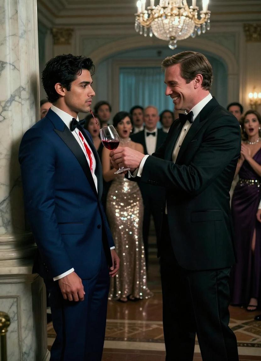 Then with a cruel wrist twist, he tipped the glass—a deep, sticky scarlet splash erupted across Diego’s navy suit, soaking layers beneath. The shock rippled through the crowd like thunder.