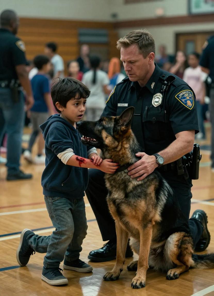 The gymnasium hushed as Hercules walked slowly, deliberately slicing through rows of children. His tail hung low, posture wary. This was no idle curiosity.
