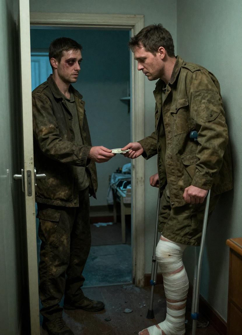 He looked at my leg, cursed softly, and without hesitation, pulled out a crumpled stack of bills—tens and twenties, worn and wrinkled. Pressing them into my palm, he said, “Eight hundred. I sold all my tools.”