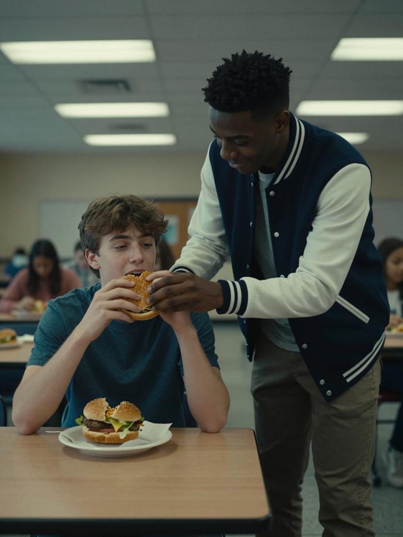 Sixteen years old. Athletic build. Brown hair that lazily fell just over his eyes. His hoodie hung effortlessly over his shoulders, worn more from routine than fashion. He looked down at the half-eaten burger resting on his tray, the edges of his fingers barely holding onto it. Present, but invisible.