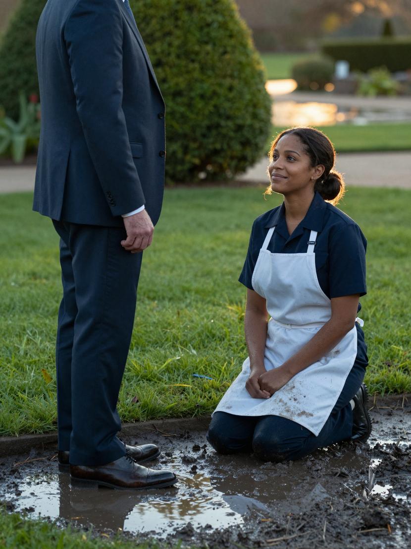 Slowly, Maya turned, her knees smudged with dirt, her uniform clinging damply to her form. She met Ethan’s hard gaze without a flicker of fear. He stopped at the puddle’s edge.