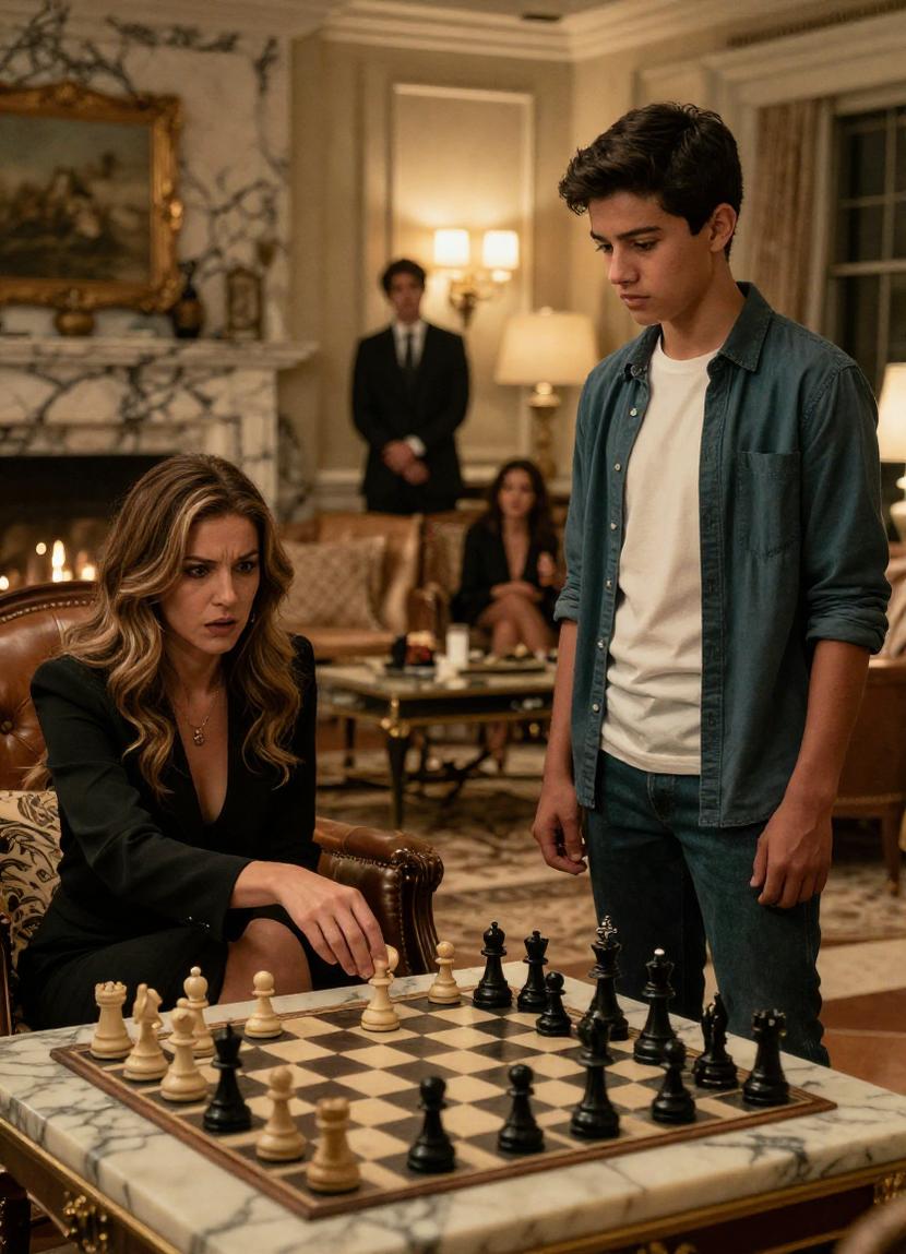 In the opulent expanse of the Silverlake Estate, Isabella Cortez’s voice rang out, laced with a sharp edge of condescension that seemed to echo off the marble walls. ‘Come here, boy. Why don’t you show us how chess is played down in the slums?’ she taunted, eyes gleaming with a cruel kind of amusement. Carlos Mendoza, only seventeen, paused his discreet service alongside his mother, Lucia, at the lavish charity dinner, shocked by the sudden summons. This was supposed to be a night for raising funds for underprivileged youth—yet the irony was lost on no one as the guests, a cluster of businessmen, politicians, and boardwives, barely concealed their snickers behind crystal flutes filled with pricey champagne.