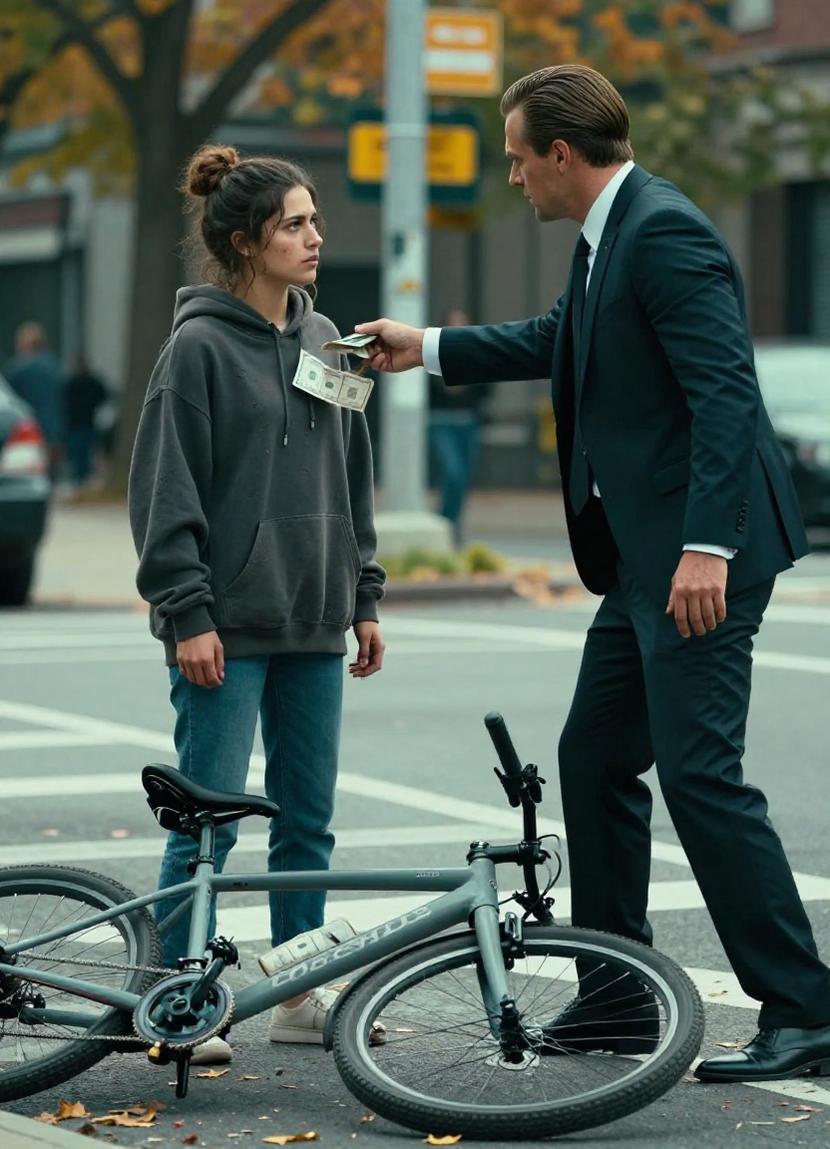 “Here,” he sneered. “Five hundred dollars. Buy a new bike, buy two. Now get out of my sight before I sue you for paint damage.”