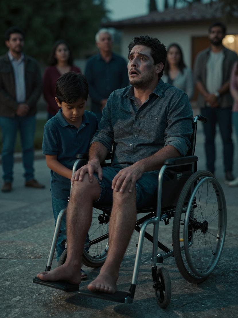 The patio fell into a tense stillness—not the polite silence of waiting, but a suffocating hush that pressed like a weight on every chest. Barefoot on the cold stone tiles, the boy’s fingers hovered mere inches from the knee of the man in the wheelchair. Exactly where the forgotten damage had been overlooked, as the dusty old medical journal had revealed.