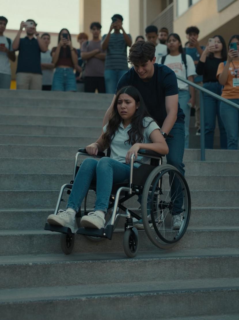 A crowd of students stood motionless by the stairwell, their faces pale and rigid. Phones were raised high—capturing every second—but no one stepped forward to help.