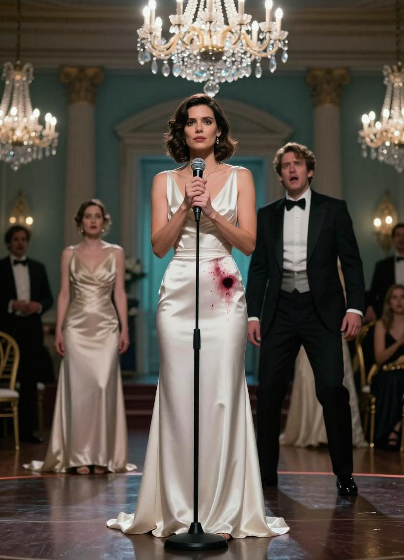Black gown sweeping the floor. Diamond earrings catching the light like icy daggers. Her eyes sharpened by entitlement and spite.